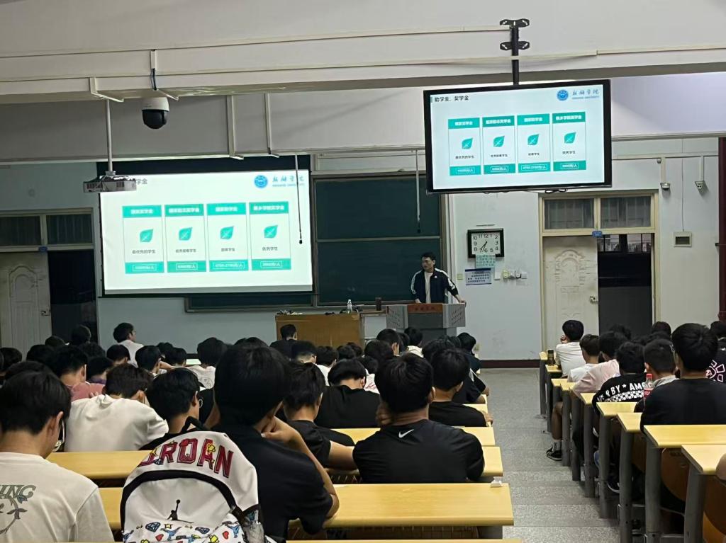 体育学院2021级辅导员陈启航首先对学校的奖助学金政策进行了全面介绍。详细讲解了国家奖学金、国家励志奖学金、学校综合奖学金及各类专项奖学金的申请条件,鼓励新生树立远大目标,刻苦钻研,以优异成绩争取荣誉。