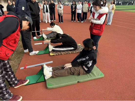 在测试现场,各测试点位分工明确、秩序井然。体育学院教师和学生志愿者们认真负责,严格按照测试标准,仔细记录每一位学生的测试数据,同时耐心为学生解答测试过程中的疑问。